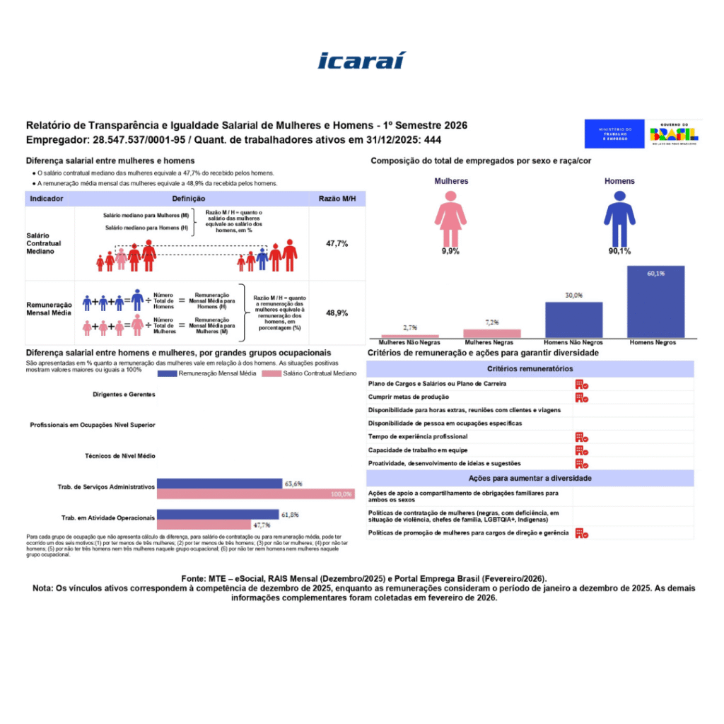 Relatório de Transparência e Igualdade Salarial de Mulheres e Homens – 1° Semestre de 2026 (Auto Ônibus Alcântara)